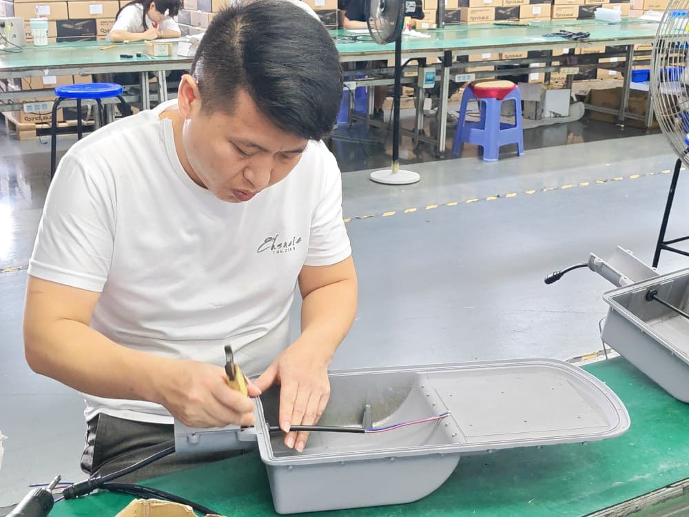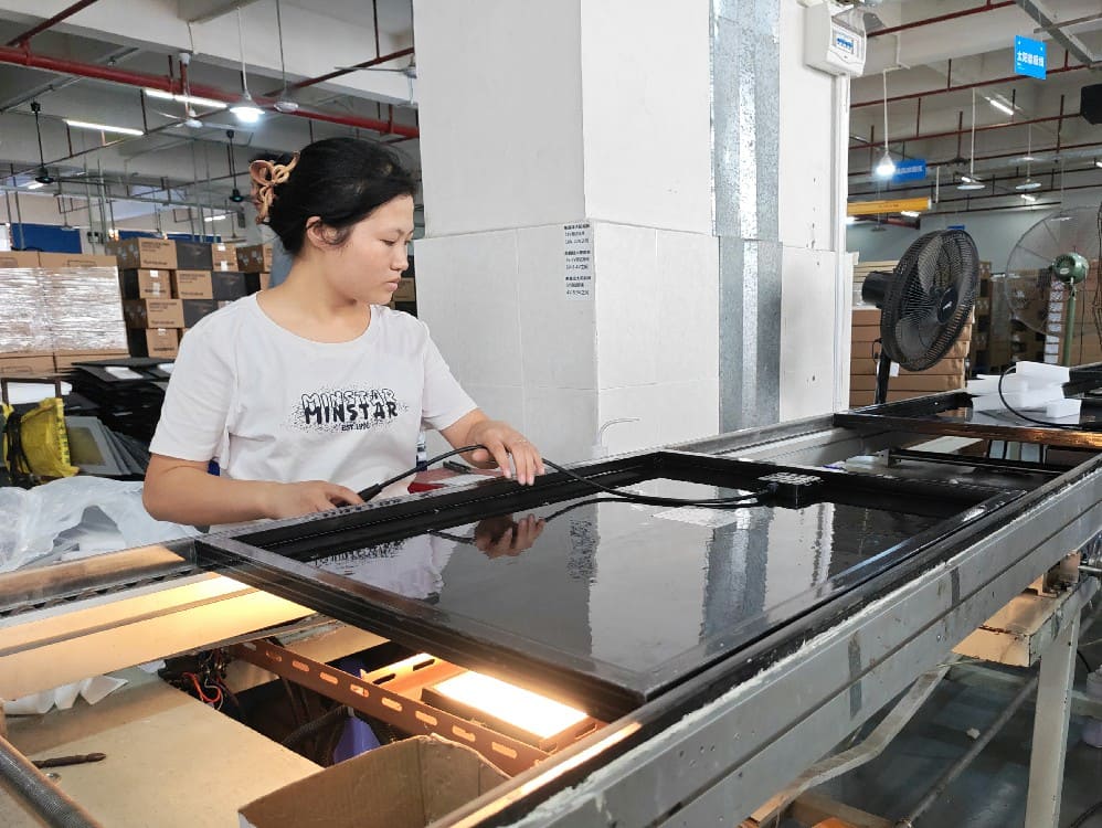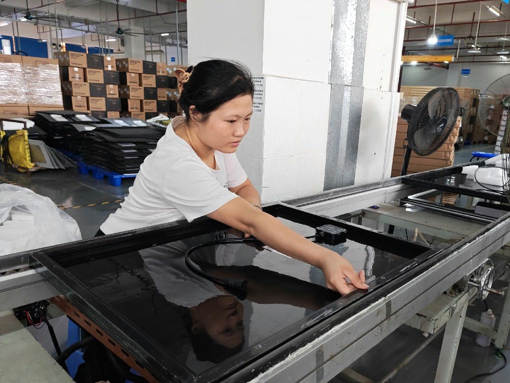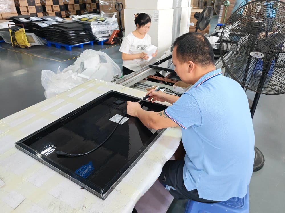 Each unit undergoes power-on testing to verify LED operation and remote control functionality.