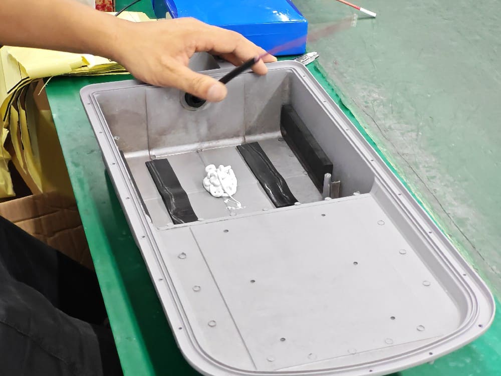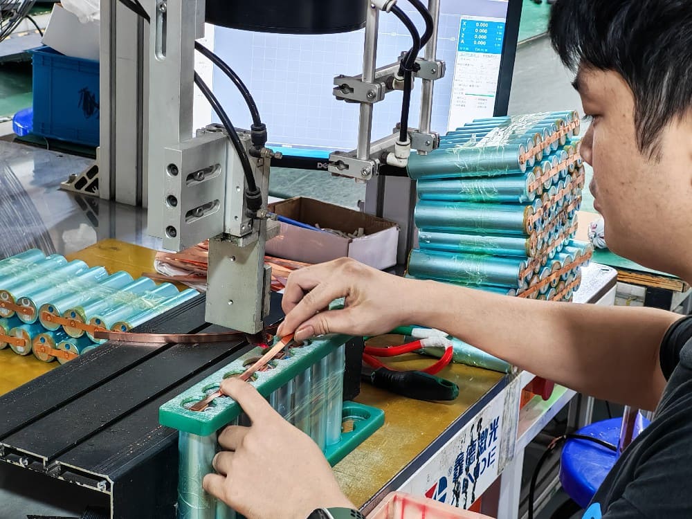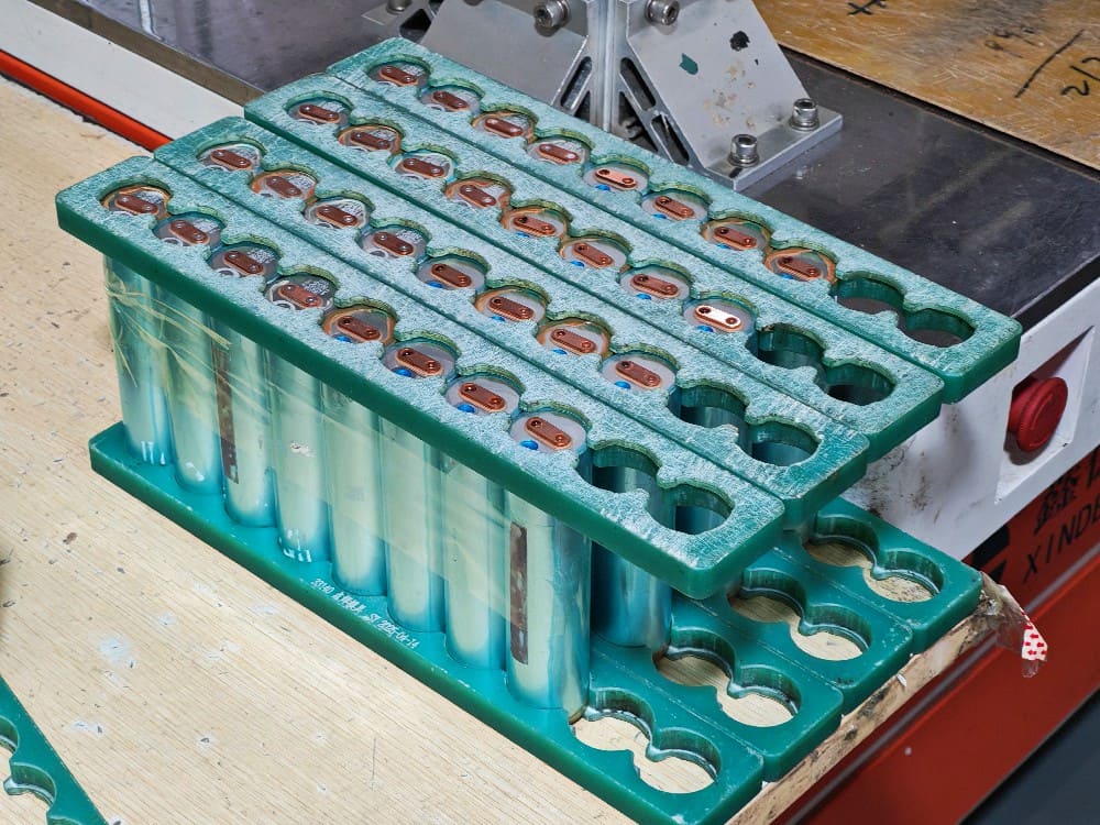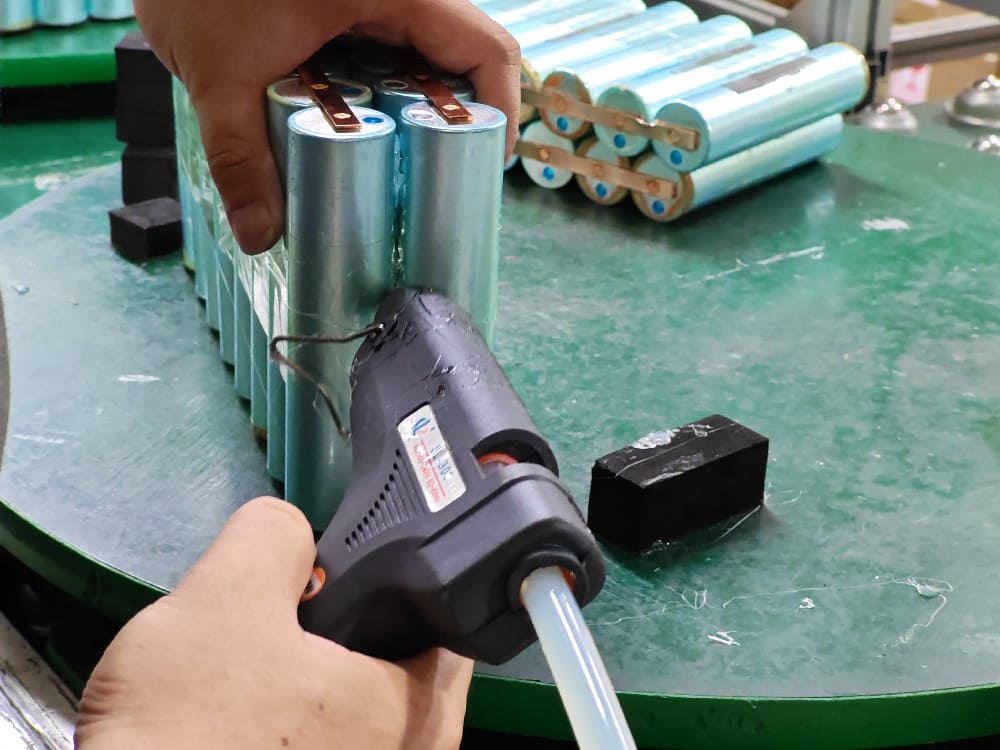 Industrial-grade adhesive is applied between cells for structural integrity and vibration resistance.
