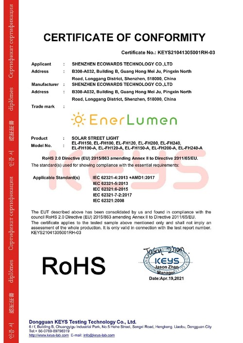 Confirms lead-free and eco-friendly materials, ensuring safe and sustainable lighting solutions for global markets.
